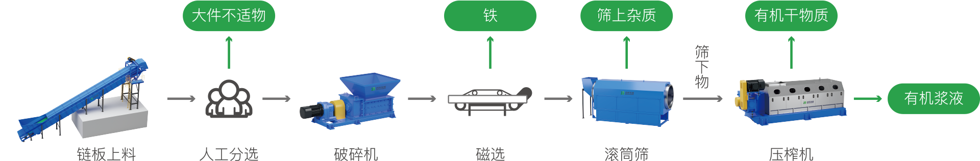 有機垃圾又稱濕垃圾,是指生活垃圾中含有有機物成分的廢棄物。對有機垃圾進行機械破碎、滾筒篩分、擠壓脫水等預(yù)處理工藝,再協(xié)同厭氧、堆肥、焚燒等資源化、無害化處理。